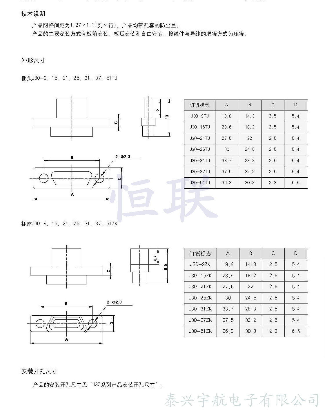 J30系列微矩形電連接器