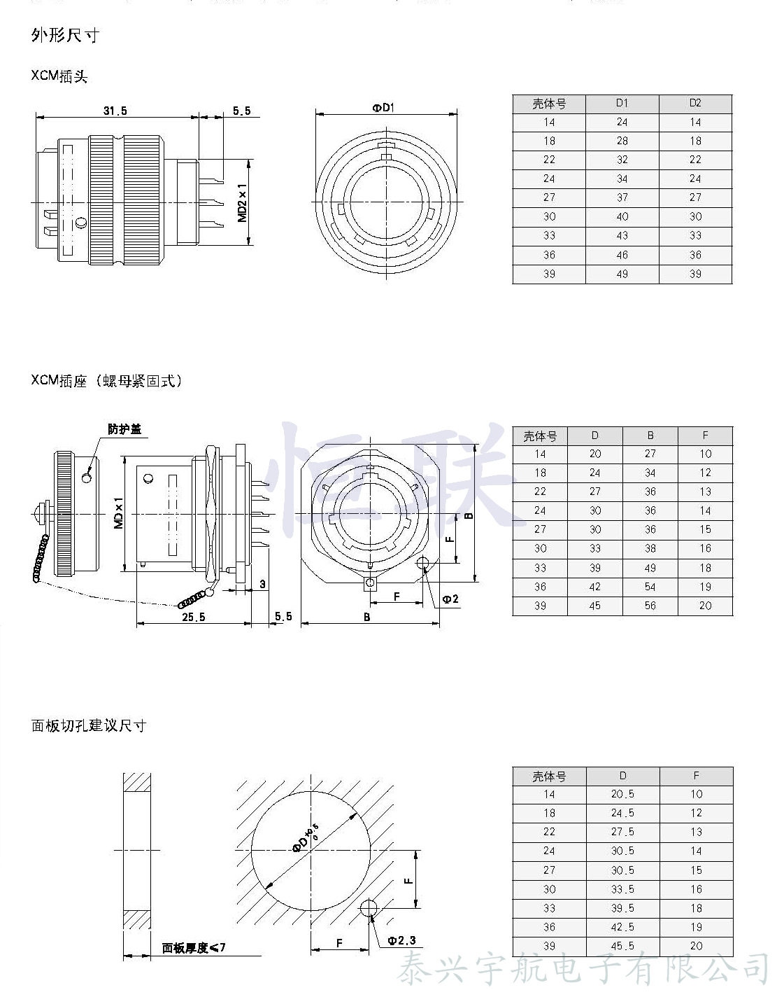 * 等效于XCM系列且同一型號(hào)對(duì)應(yīng)插頭座可以互配。