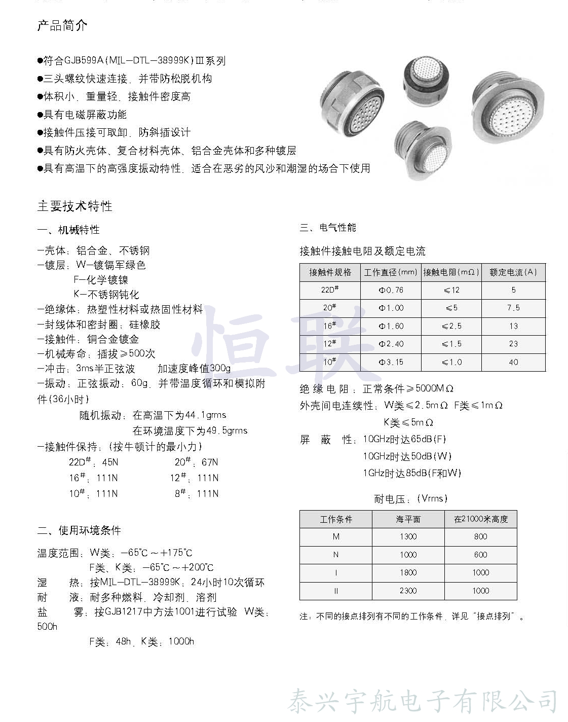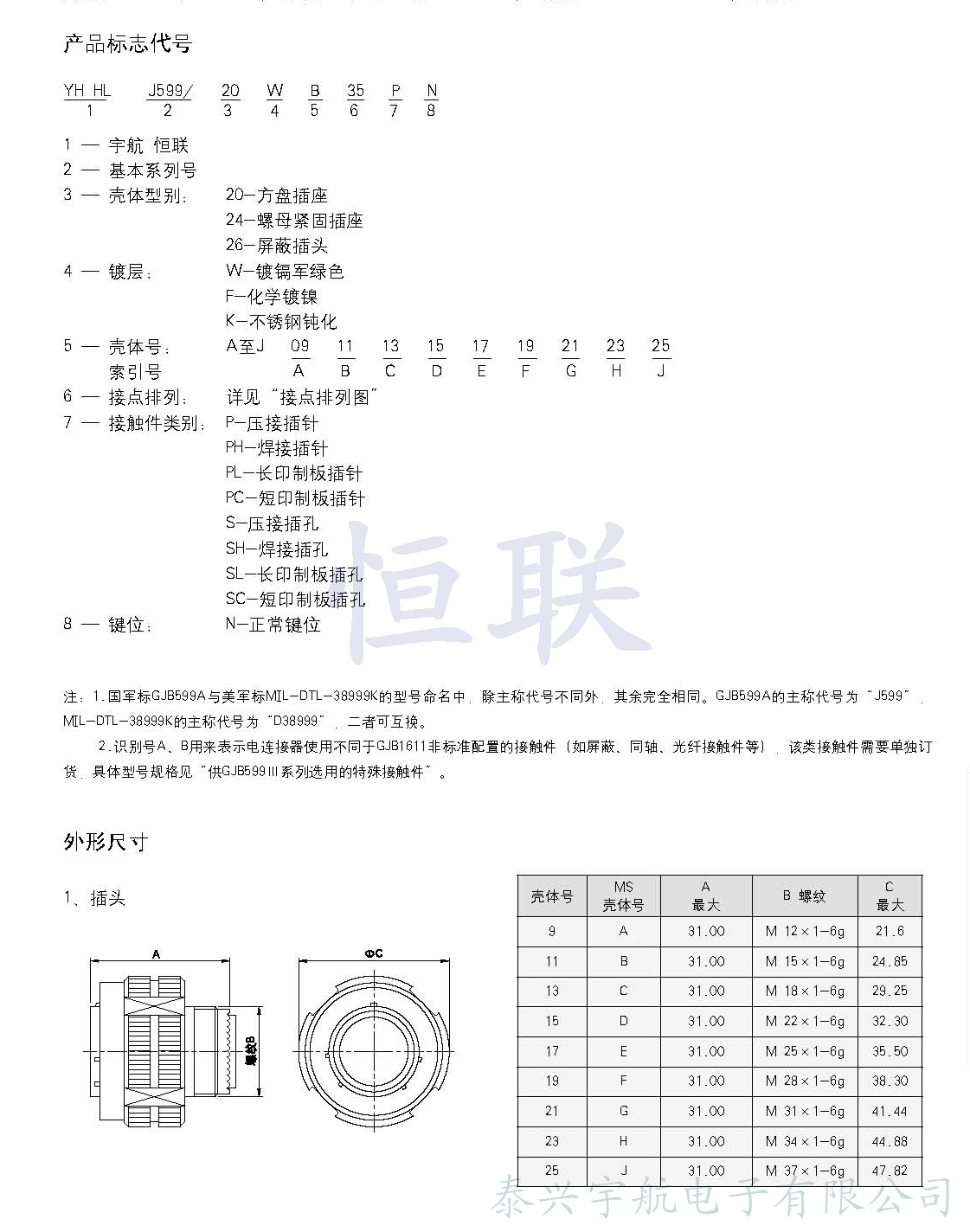 * 符合GJB599A(MIL-DTL-38999K)Ⅲ系列