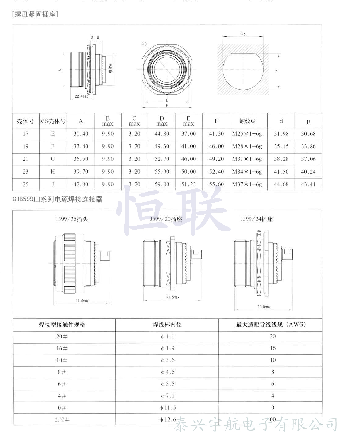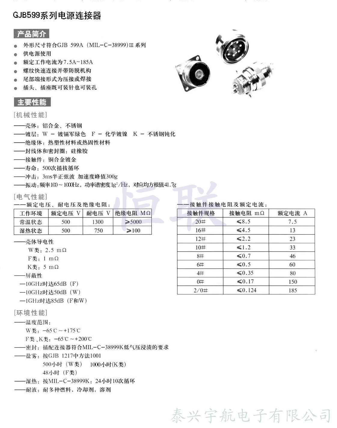 GJB599系列電源連接器