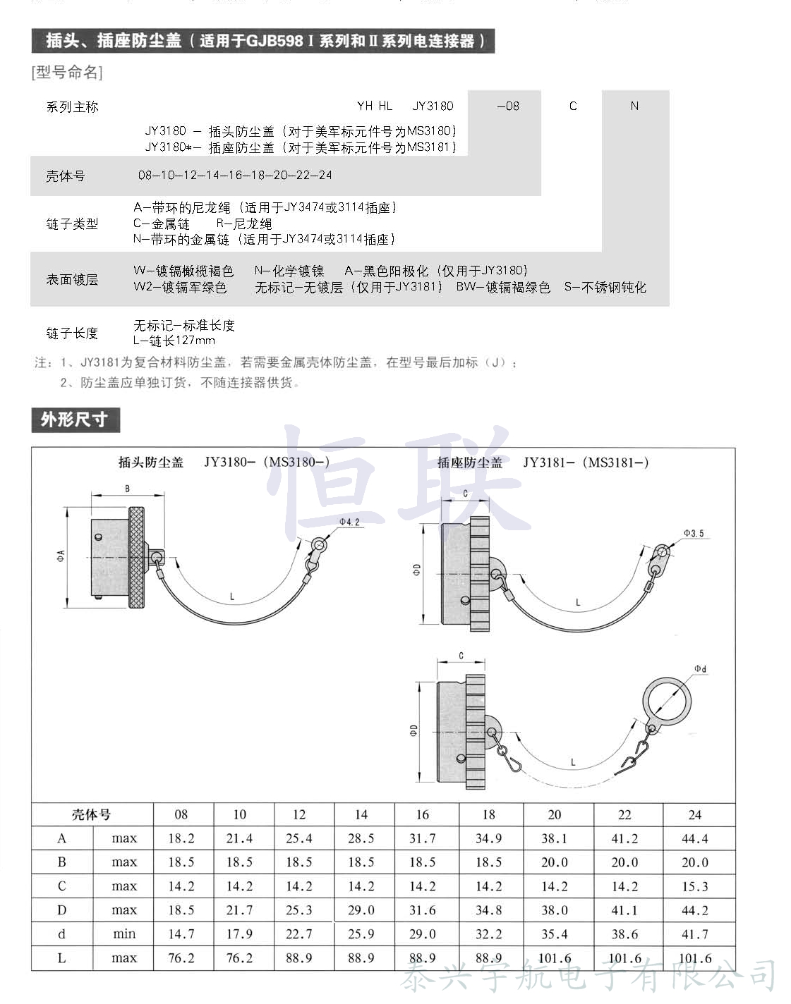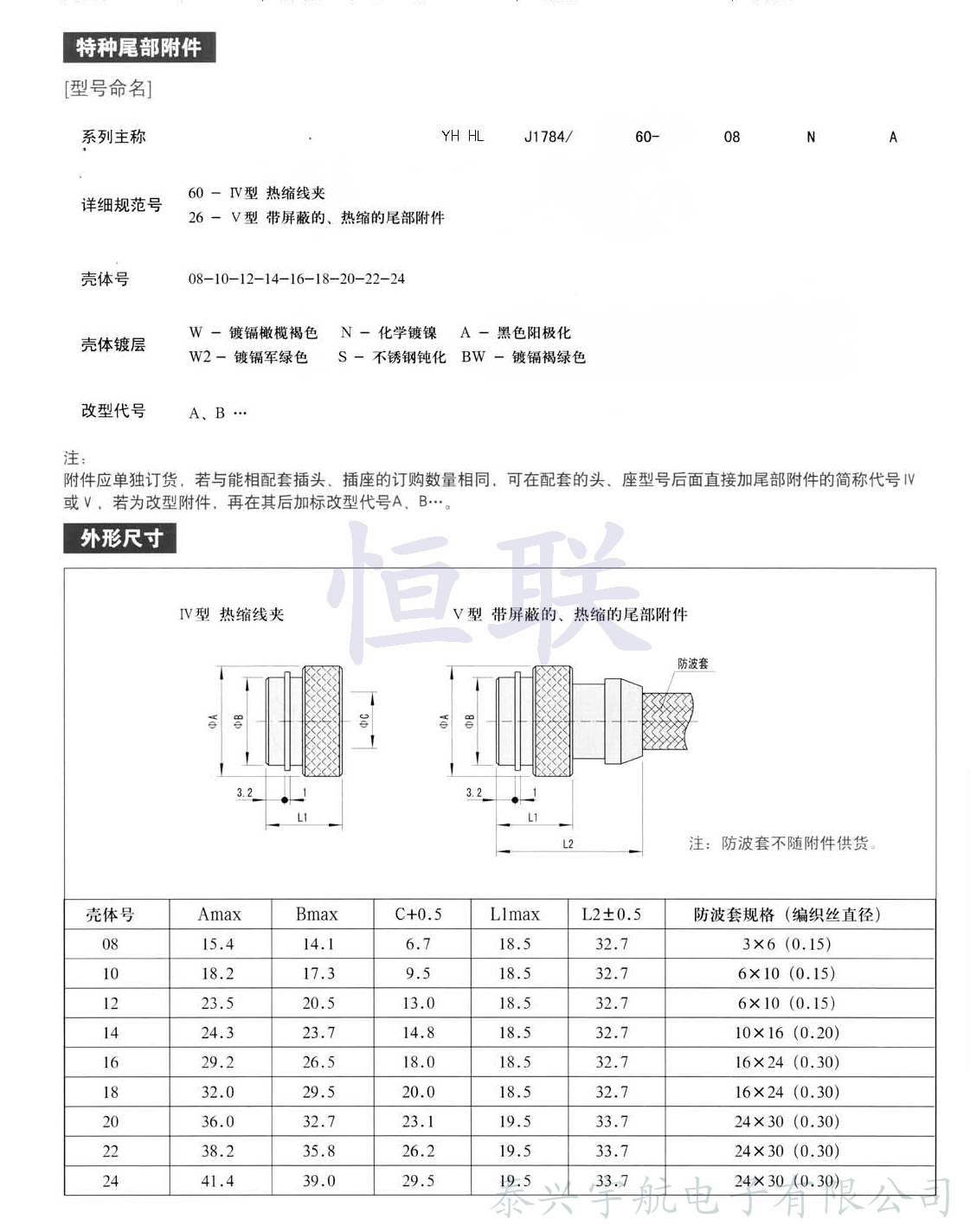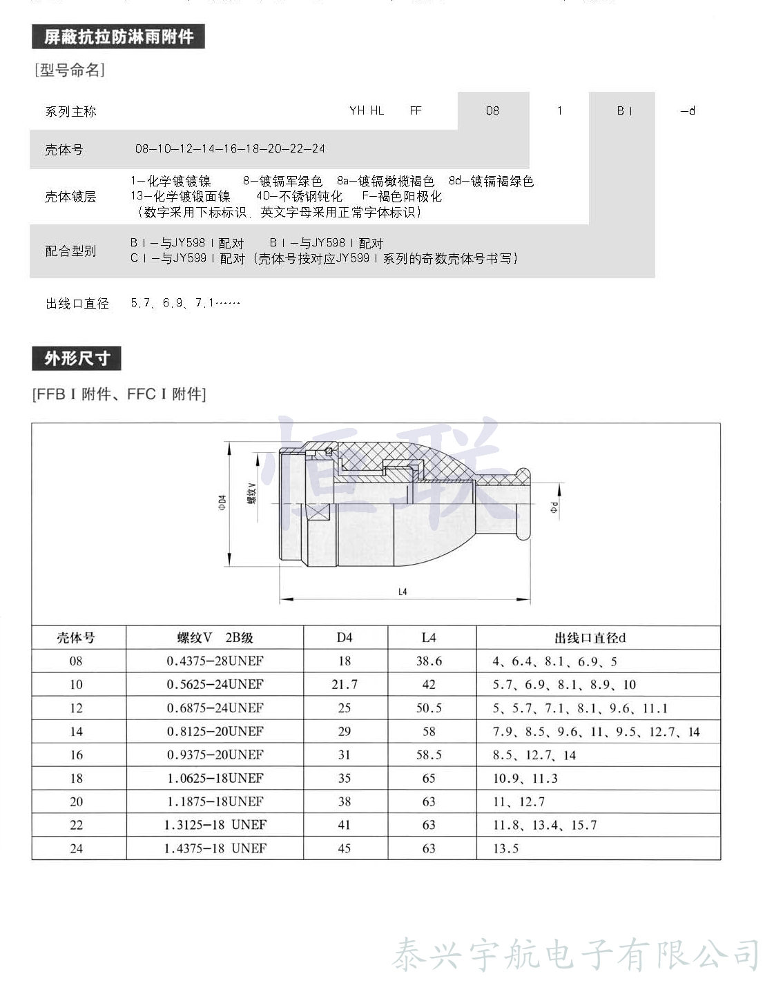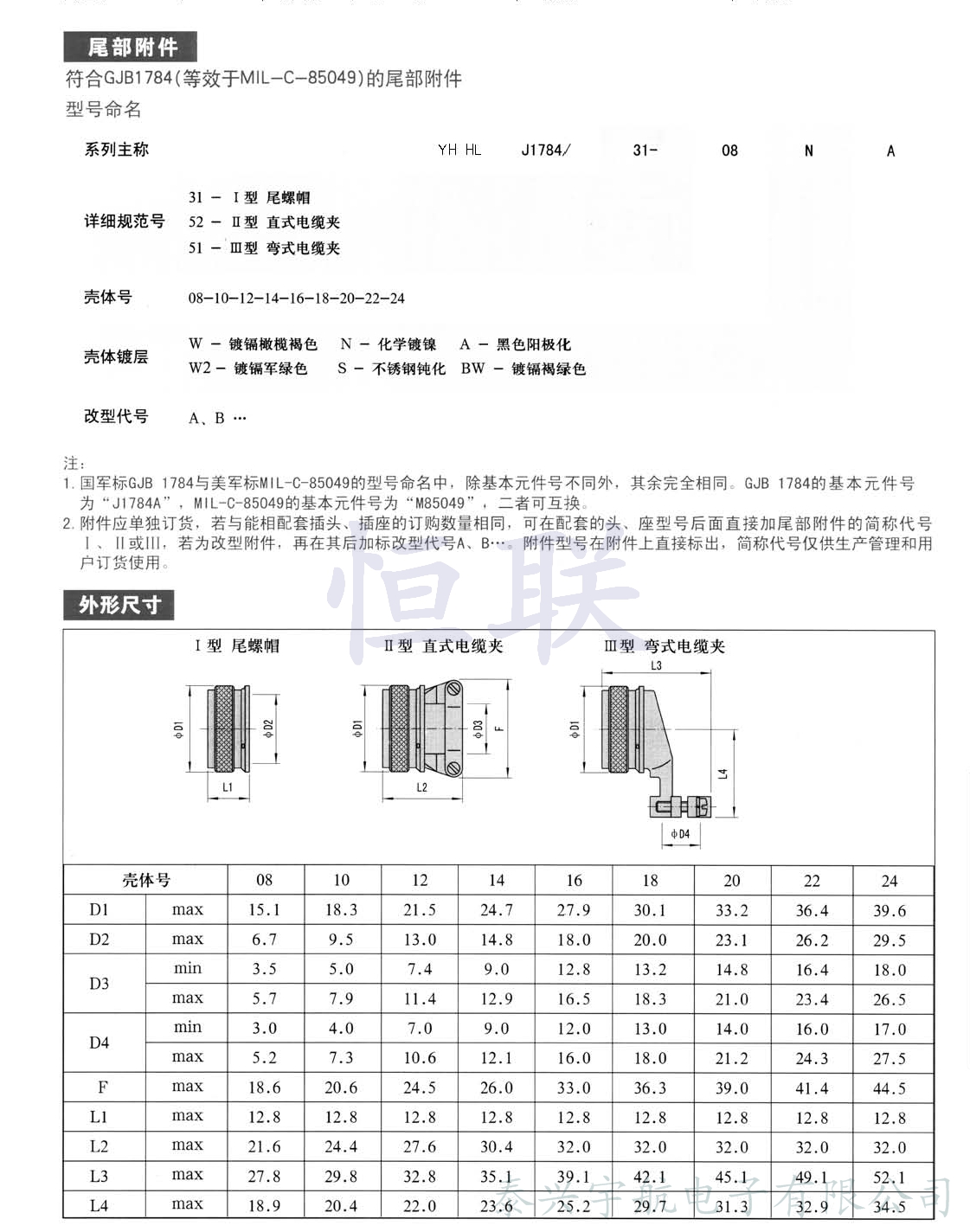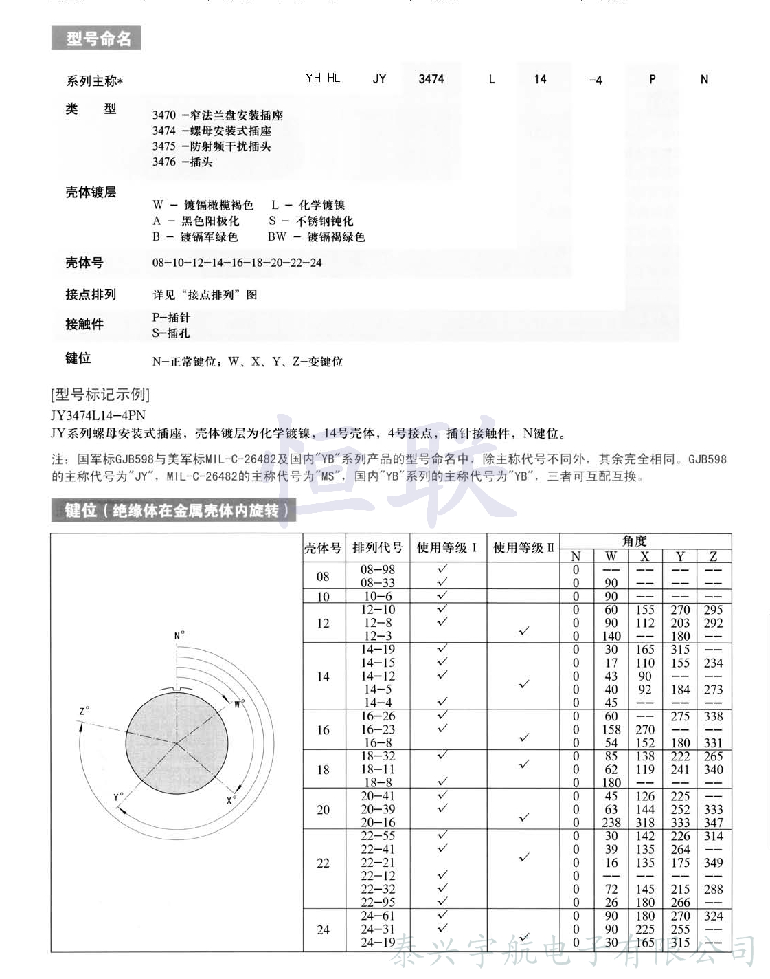 符合GJB 598(等效于MIL-C-26482)Ⅱ系列