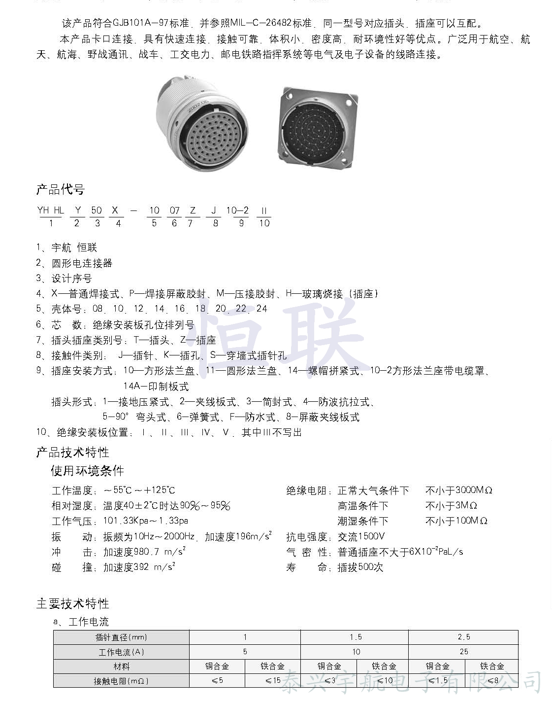 Y50系列圓形電連接器(航空插頭)簡介