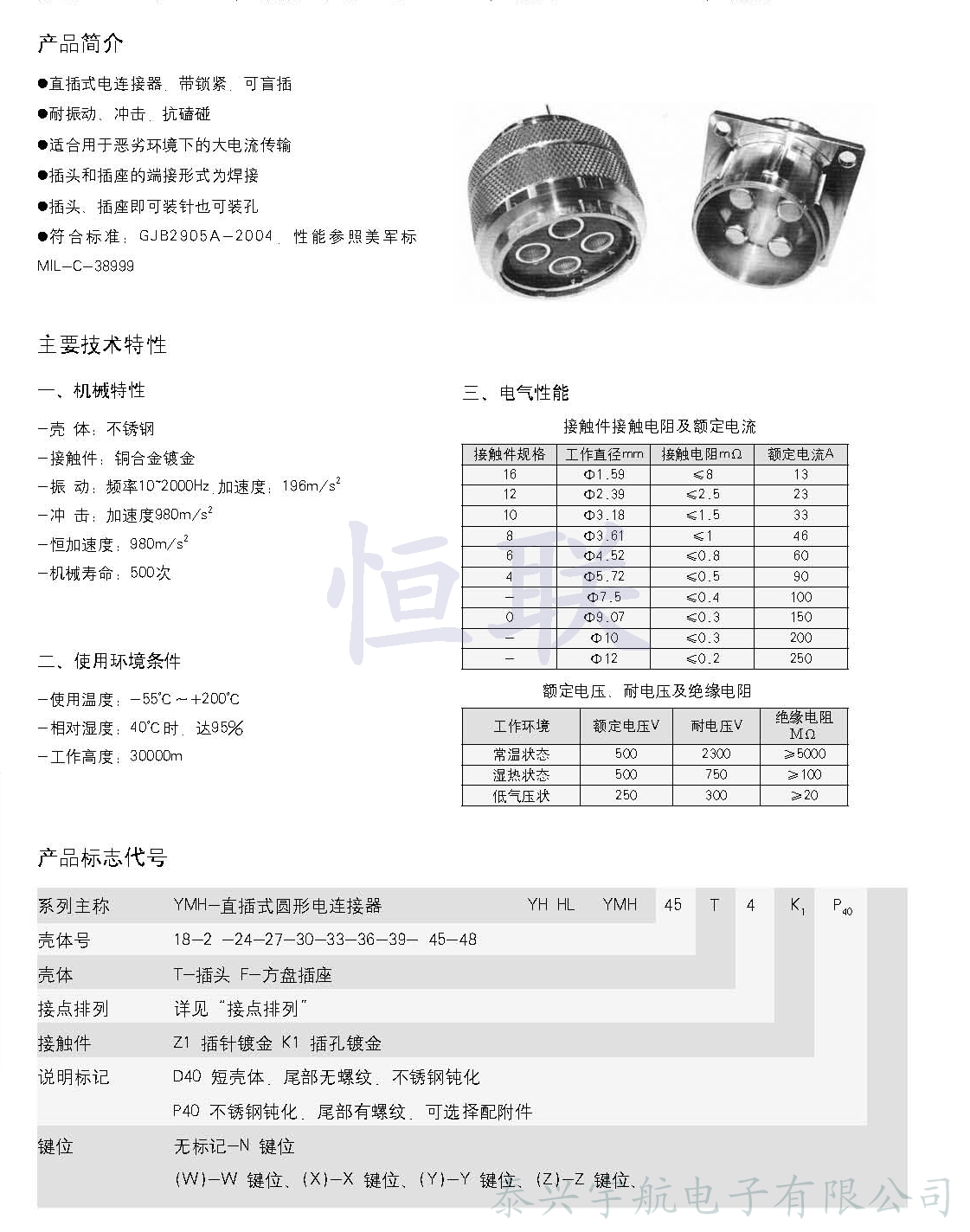 YMH系列圓形電連接器